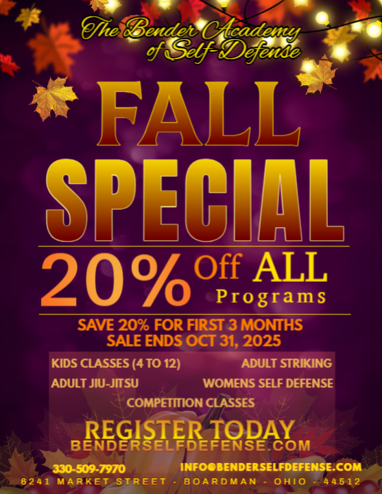 The Bender Academy of Self Defense is the Boardman area’s elite academy that focuses on pure self defense through striking skills and Jiu Jitsu. With over 20 years of experience both in martial arts and law enforcement, owner Micah Bender takes to the mats and shares from the wealth of knowledge that was accumulated through competition, specialty training, and on the job experience.