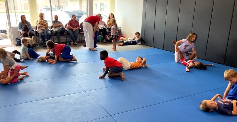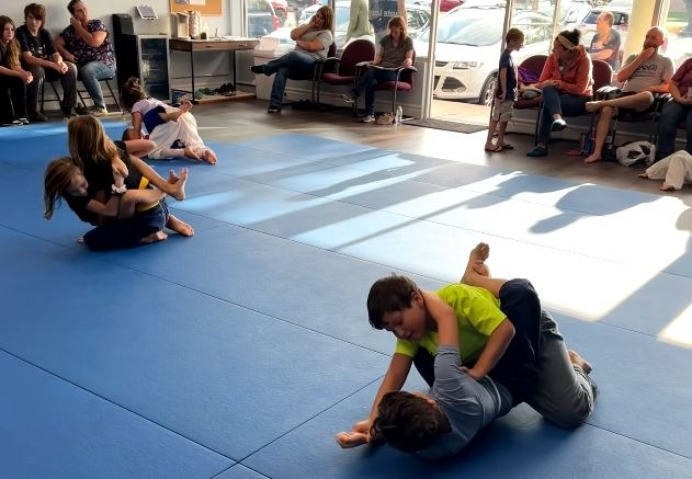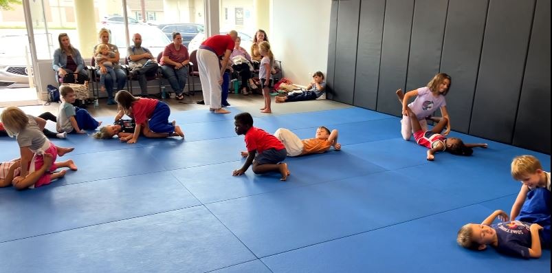 While they’re introduced to the basics of Jiu‑Jitsu and self‑defense, the focus at this age is on learning, exploring, and having fun. They’re still too young to apply techniques in a real situation, so we emphasize encouragement, positive movement, and helping them understand the power of Jiu‑Jitsu at a pace that makes sense for their development.